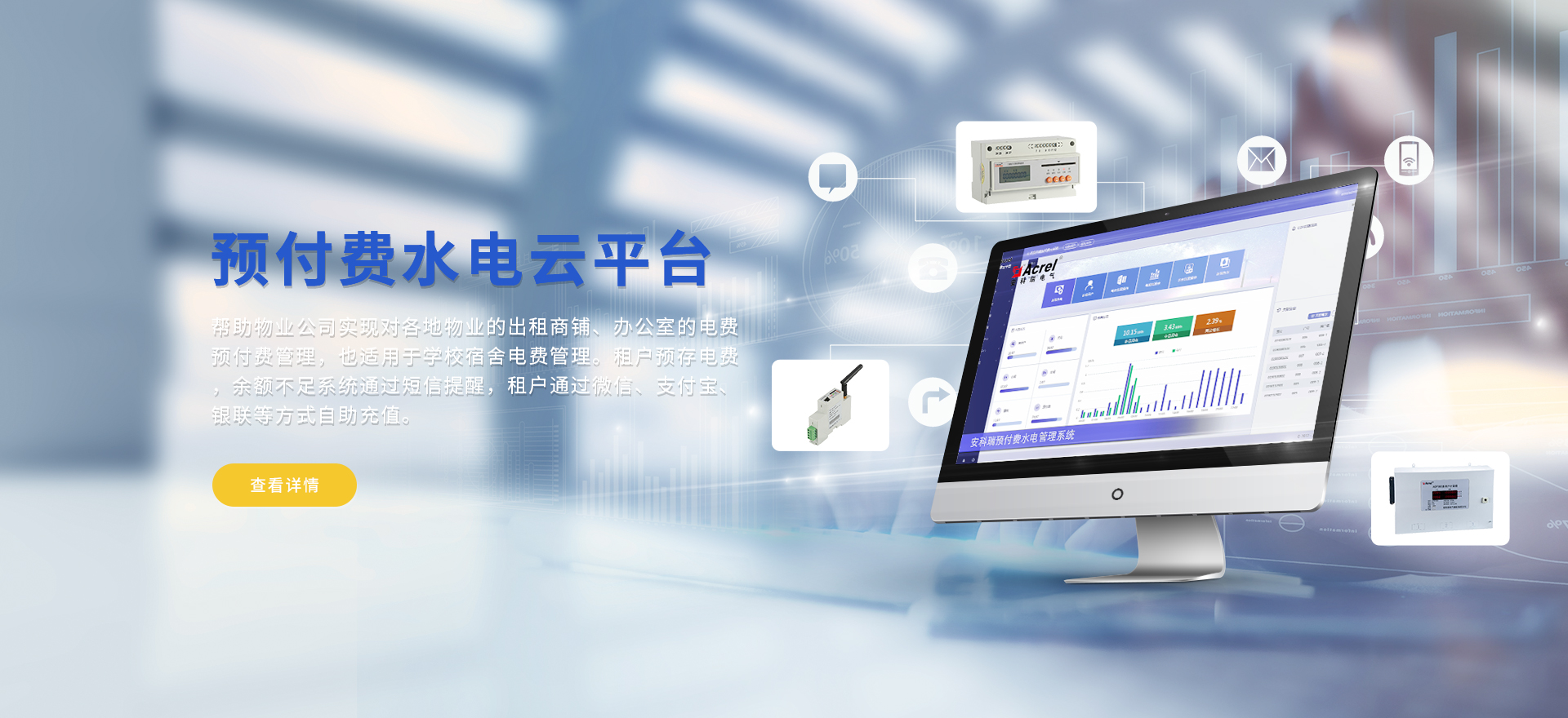 安科瑞提供的解決方案包括Acrel-EIoT能源物聯網云平臺、變電所運維云平臺安全用電管理云平臺、環保用電監管云平臺、智慧消防云平臺、能源管理云平臺、工業企業能源管控平臺、遠程預付費云平臺餐飲油煙監管云平臺、電動汽車/電瓶車充電樁收費管理云平臺、電力監控/無線測溫系統、電能質量治理系統、電氣火災監控系統、消防設備電源監控系統、防火門監控系統應急照明和疏散指示系統、智能照明控制系統、醫用隔離電源絕緣監測系統等,幫助用戶實現能源智能化、可視化、精細化管理,提高用能效率和用能安全,為企業節能降耗和實現能源數字化建設提供數據服務。